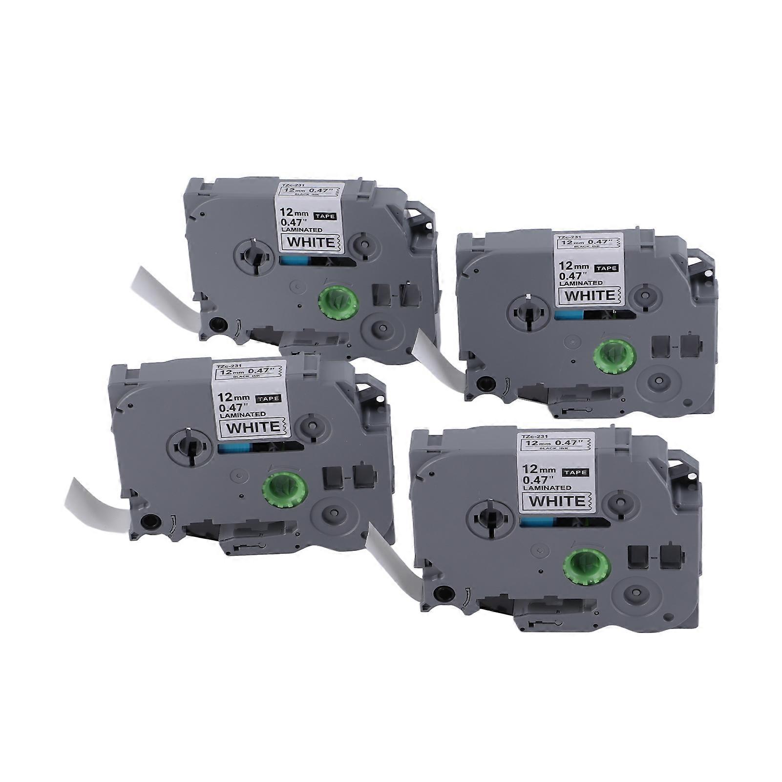 Label Maker Tape 12mm Width 8M Length Black On White Waterproof Covering Strong Adhesive Label Tape for TZC231 White Box of 4
