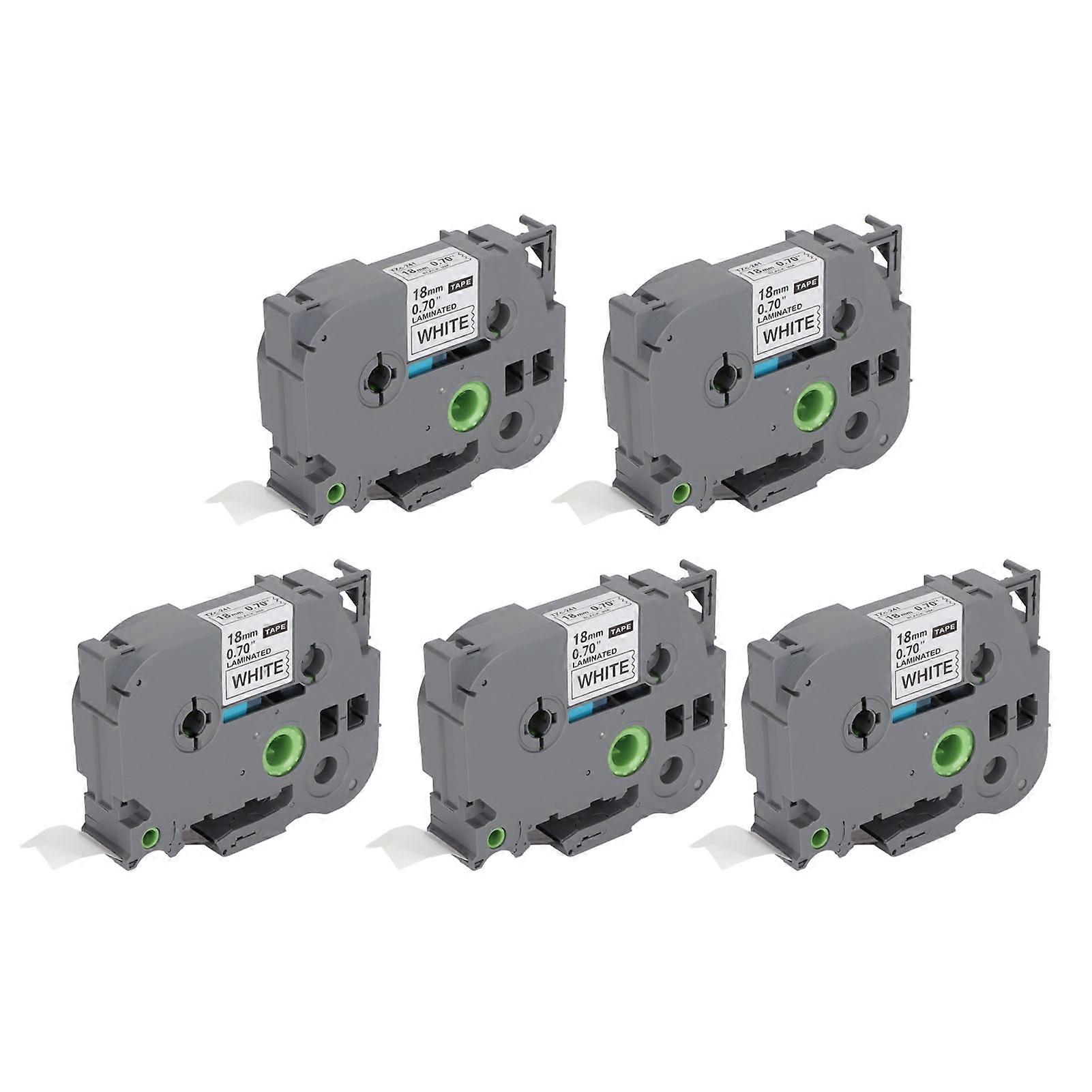 Label Maker Tape 18mm Width 8M Length Black On White Label Maker Refills for TZe 141 for TZe 241 for TZe 541 for TZe 641 White Box of 5