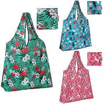 Large Capacity Shopping Bag Reusable Shopping Bags Portable Folding Polyester Assorted Color 52 X 70 Cm For Traveling 3Pcs