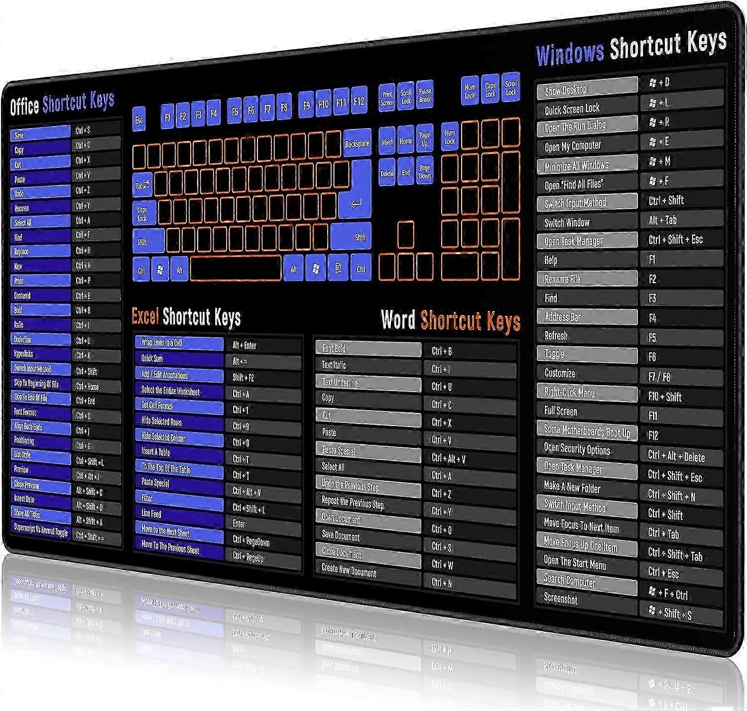 Large Computer Gaming Mouse Pad,Keyboard Shortcut Keys Guide Mousepad Non-Slip Rubber Base Desk Mat for Game (35.4x15.7x0.12In,English Shortcut)