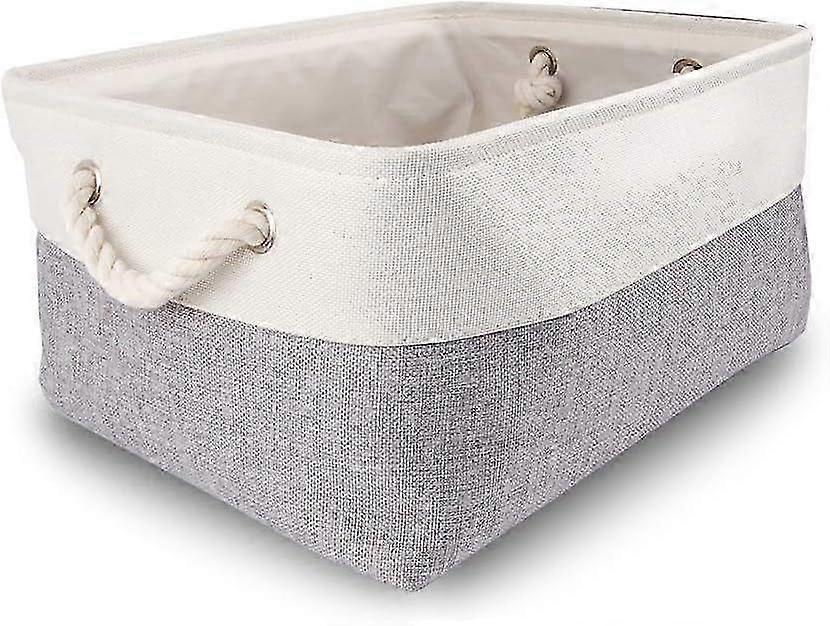 Large Fabric Storage Box, Rectangular Storage Basket with Handles for Toys, Closet (Foldable, Grey White)