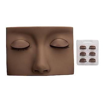Lash Mannequin Head with 3 Pairs Replaceable Silicone Eyelids for Eyelash Extension Practice Dark Brown Training Tool
