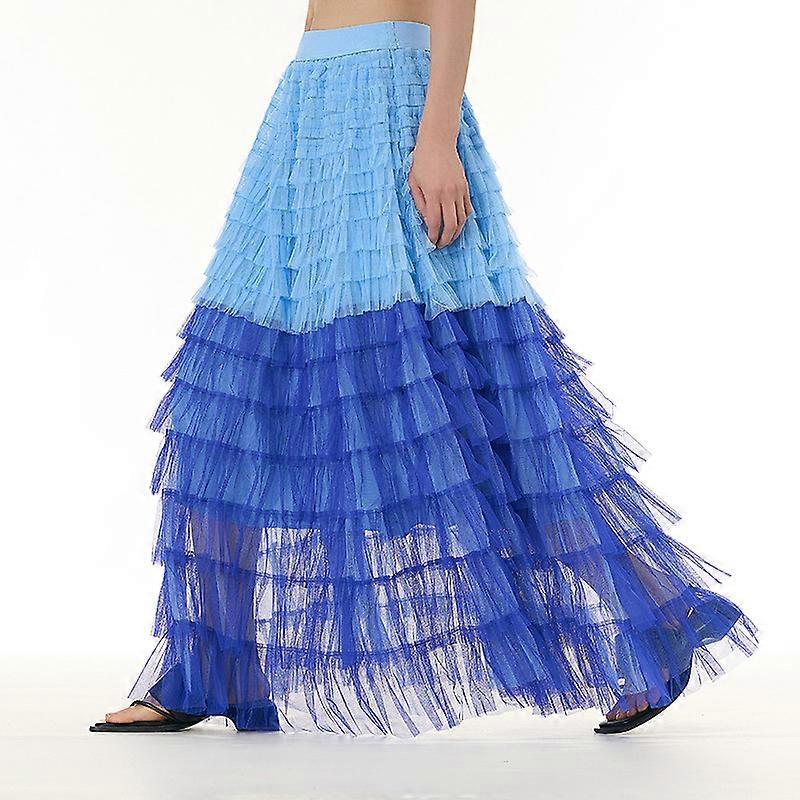 Layered Ruffles Mesh Sheet A Line Midi Skirts Casual Gradient Color Long Basic Skirt 2024 New in Multicolor Woman Clothing