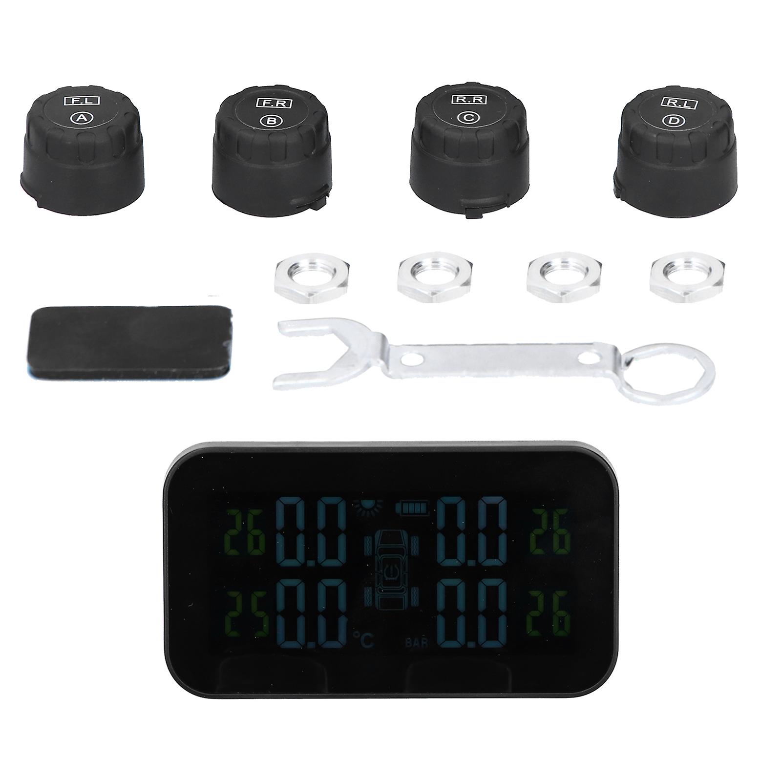 LCD Display Car TPMS Tire Pressure Monitor System with Sensor Solar Charging USB Charging