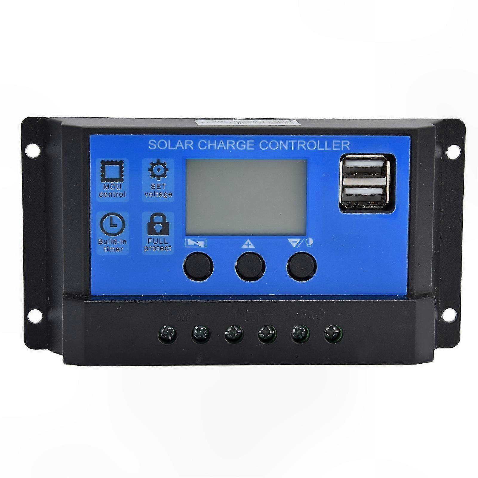Feature: 1. Equipped with an LCD screen that displays system status and data for convenient monitoring and control. 2. Suitable for various applications, including home, industrial, and commercial use. 3. Includes protection features such as short circuit, open circuit, reverse polarity, and overload protection. 4. Utilizes an industrial-grade main control chip for stable, reliable, and durable performance. 5. Compact and lightweight design allows for simple installation within minutes. Specification: Item Type: Solar Charge Controller Product Size: Approx. 135 x 70 x 35mm / 5.3 x 2.8 x 1.4in Product Material: Plastic Voltage: 12V/24V Automatic Identification USB Output: 5V/3A Standby Current: <10mA Discharge Cut-Off Voltage: 10.7V (default value, adjustable) Discharge Recovery Voltage: 12.6V (default value, adjustable) Floating Voltage: 13.7V (default value, adjustable) Weight: Approx. 150g / 5.3oz Working Temperature: -35°C to 60°C Package List: 1 x Solar Charge Controller