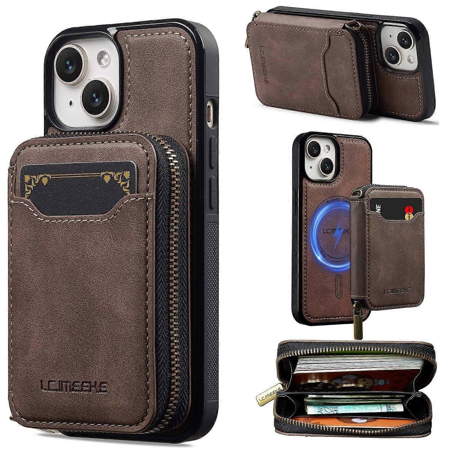 LC.IMEEKE L6 For iPhone 14 13 Magnetic Case Detachable Zipper Wallet Leather Coated PC + TPU Phone C