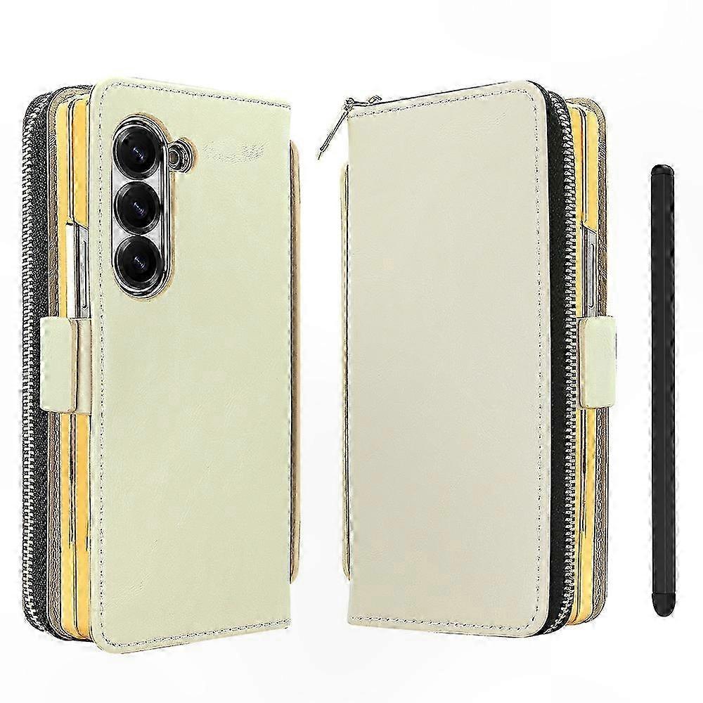 Leather Phone Case with Zipper Pocket and Screen Protector for Foldable Smartphones