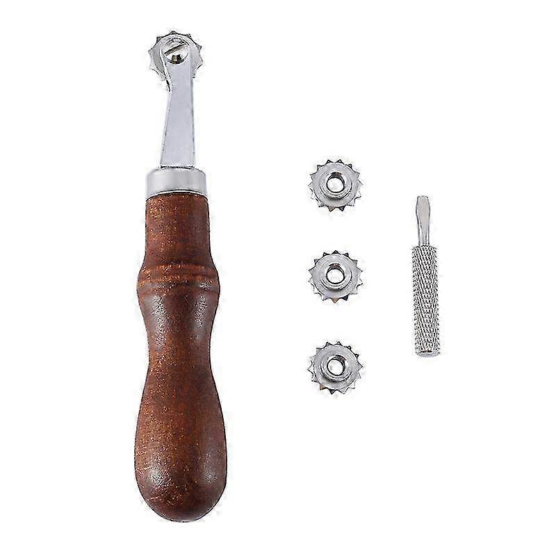Leathercraft Hand Tool Set with Punching Wheel and Spacing Wheel for DIY Leather Art Projects and Scribing