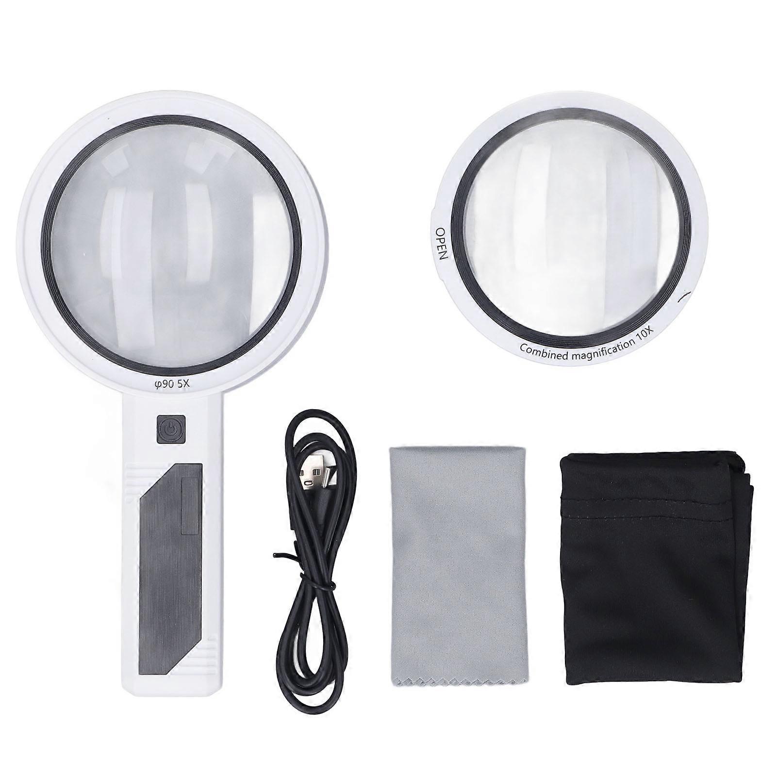 LED Handheld Magnifying Glass 3X 5X 10X 3 Lighting Colors Rechargeable Hand Reading Magnifier