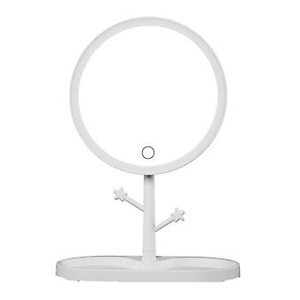 LED Lighted Desktop Makeup Mirror with Base Hooks USB Rechargeable Portable Stepless Dimming Lamp Adjustable Angle Cosmetic Vanity Mirror for Bedroom