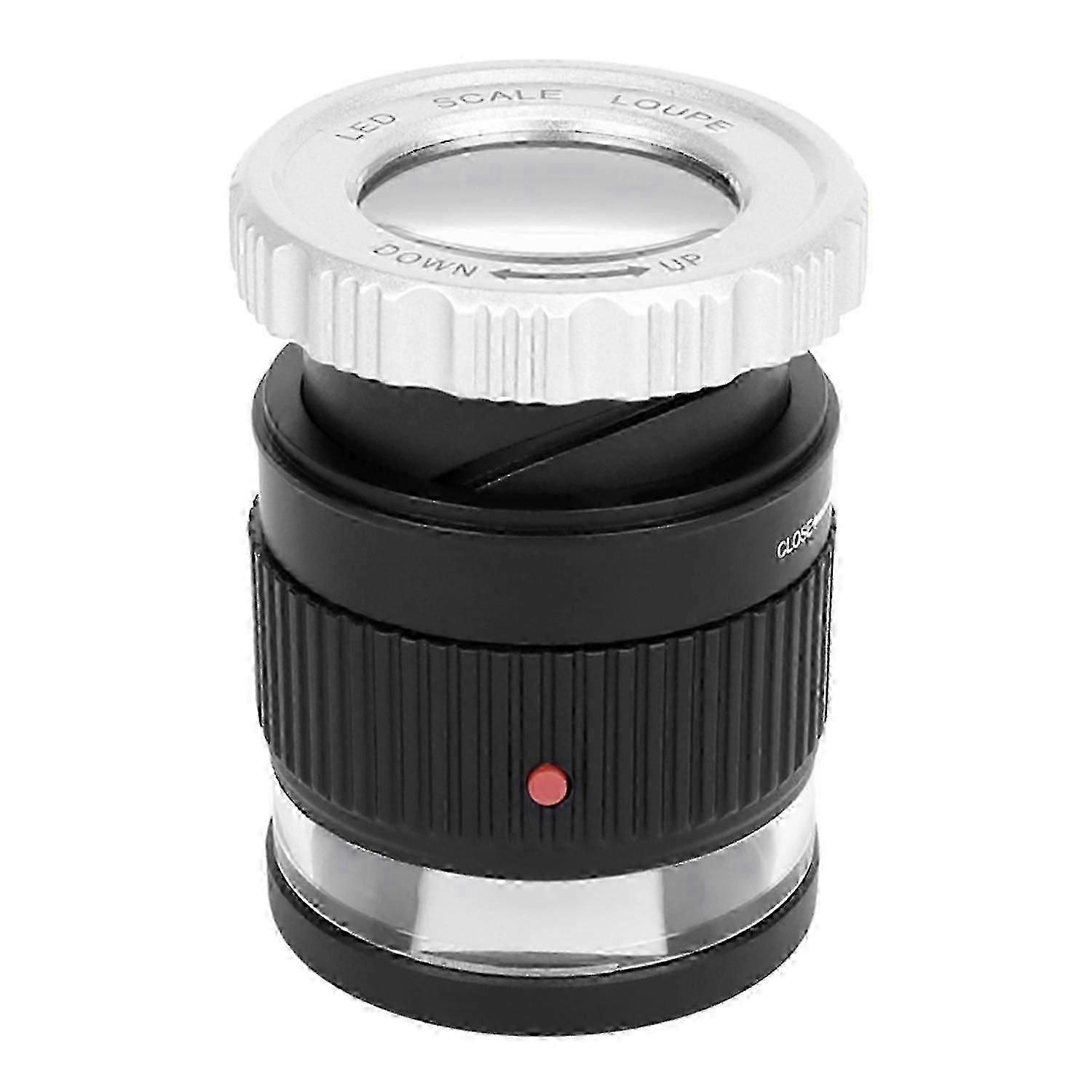 LED Scale Loupe 30X Adjustable Magnification Magnifier Metal Cylinder Type Mirror with Scale Small S