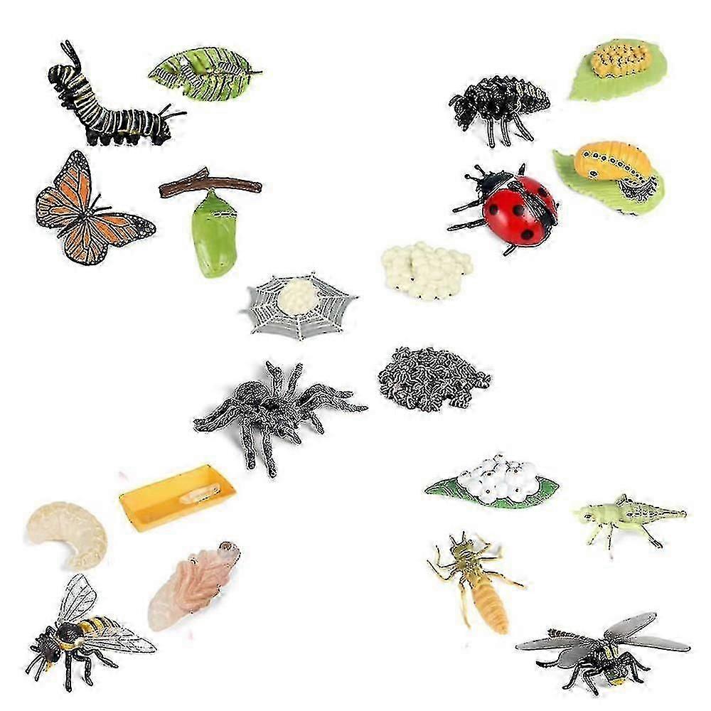 Life Cycle Figurines Of Butterfly Spider Bee Ladybug Dragonfly, Plastic Insect Bug Figures Toy, Sch