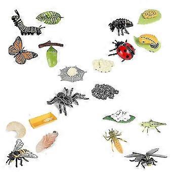 Life Cycle Figurines Of Butterfly Spider Bee Ladybug Dragonfly, Plastic Insect Bug Figures Toy, Sch