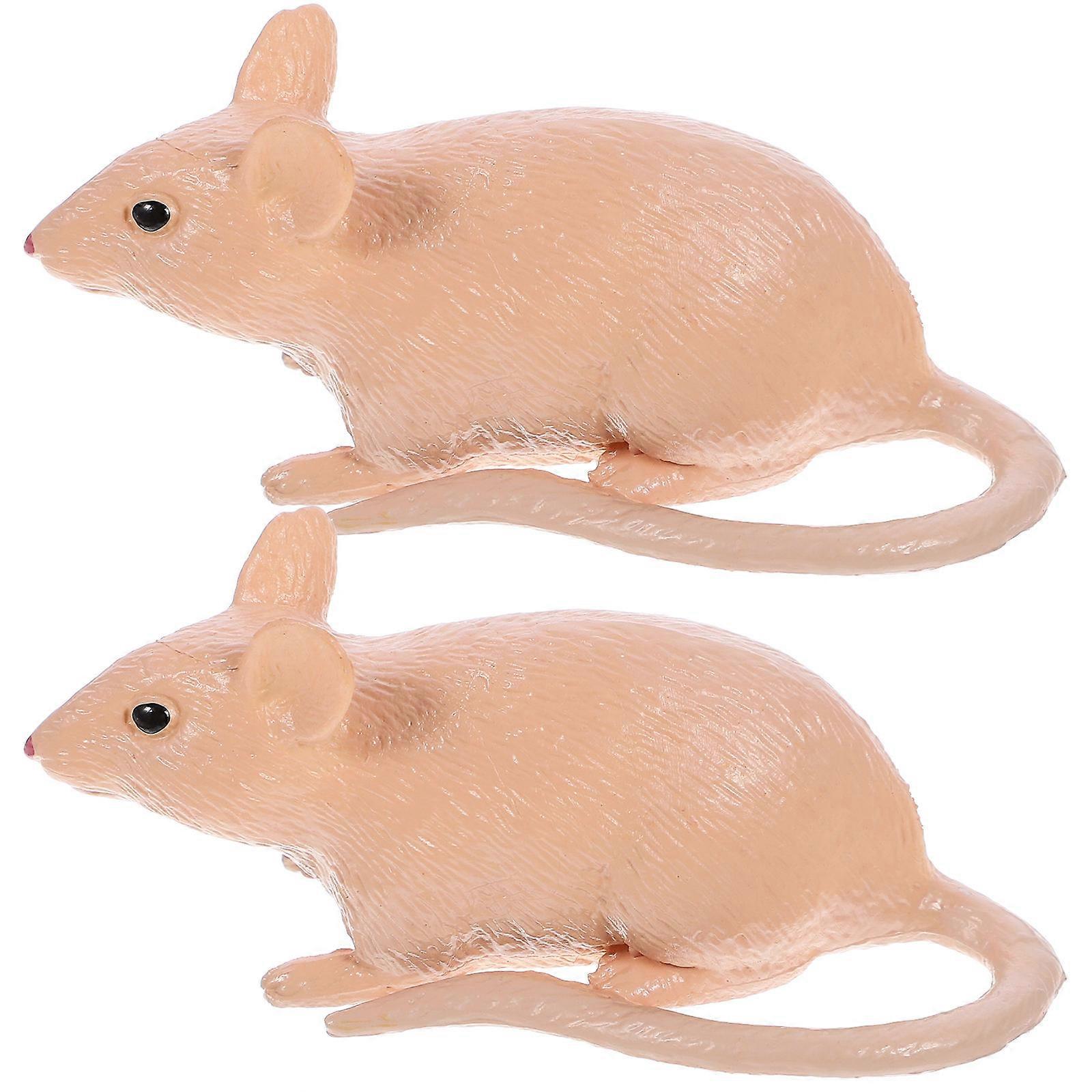 Lifelike Plastic Mouse Toy for Decor Beige Color 2Pcs Small Size