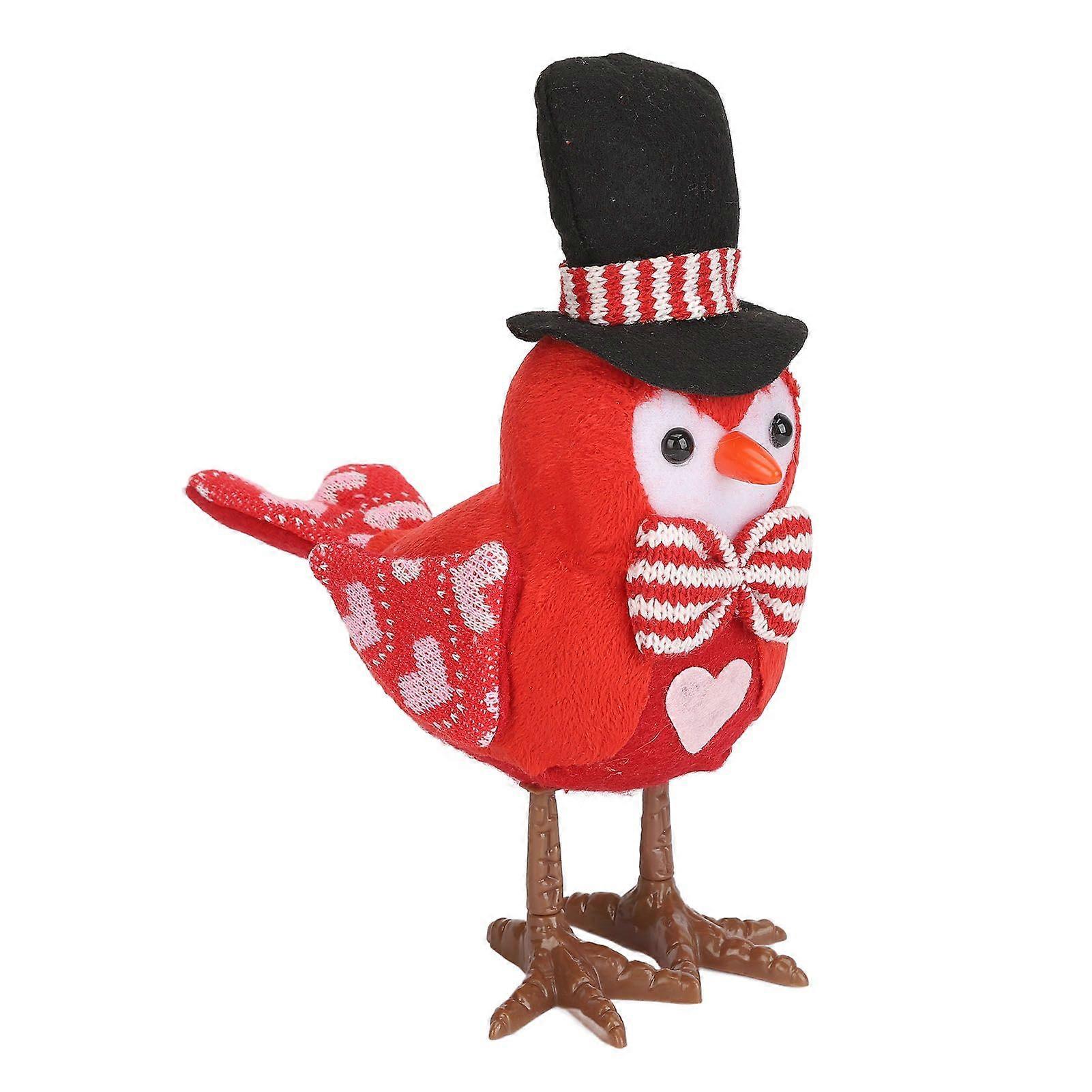 Light Up Bird Decor LED Light Decorative Small Plush Birds Ornament Glowing Cute Birds Figurine for Desktop Mantel Windowsill Red
