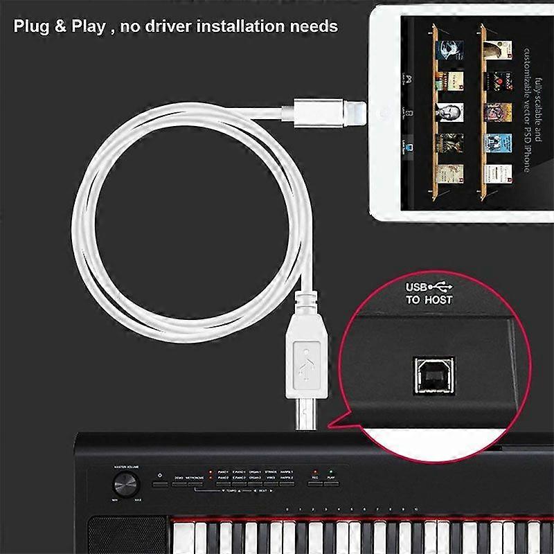 Lightning to Type-B MIDI Keyboard Converter USB 2.0 Cable for iPhone 7 8 X iPad