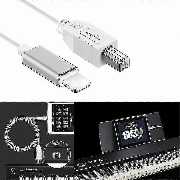 Lightning to Type-B MIDI Keyboard Converter USB 2.0 Cable - iPhone and iPad Compatible - Reliable Data Transfer