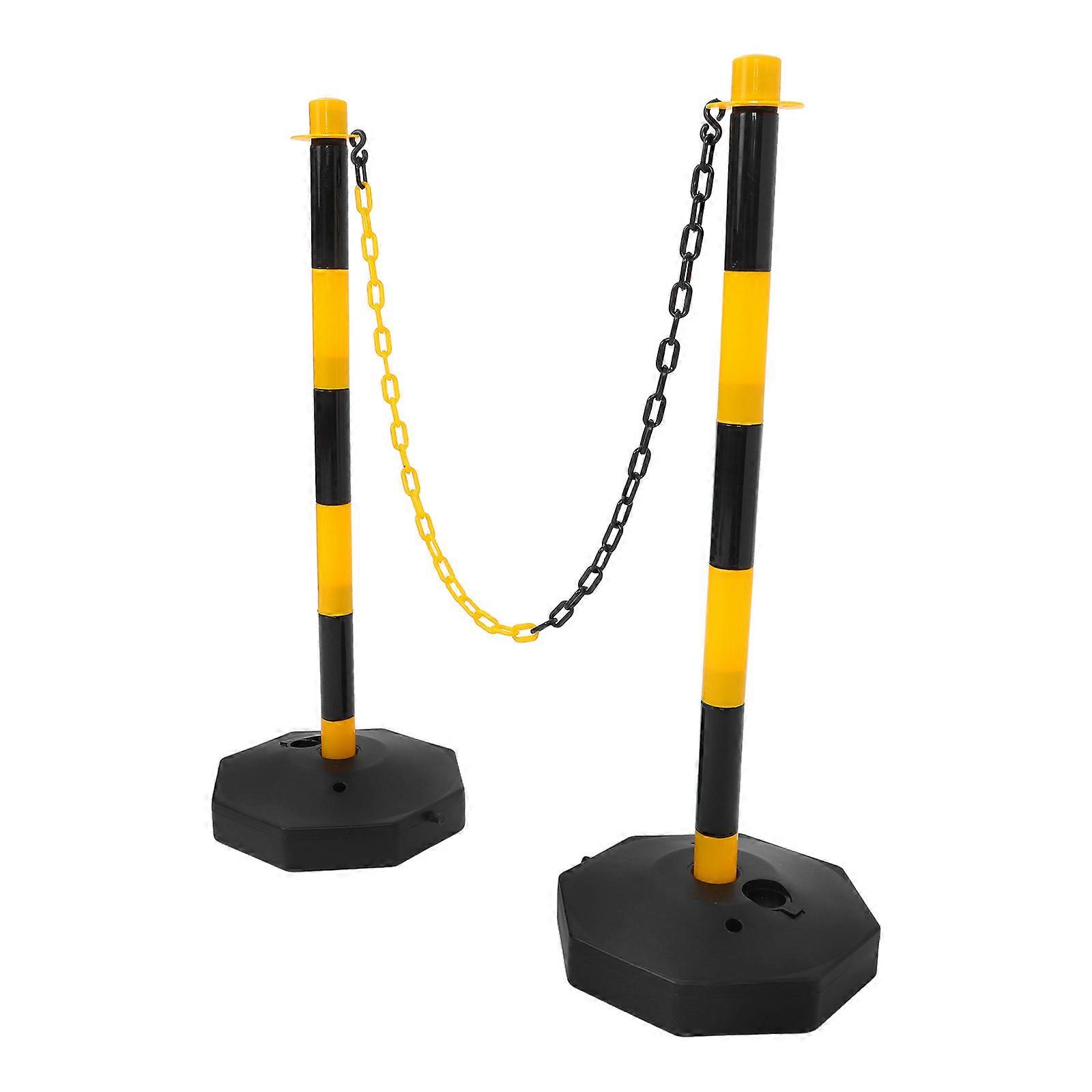 Lightweight Plastic Fillable Base Traffic Warning Post with Reflective Collars and Chain Barrier for Road Construction, Parking Lots, and Temporary