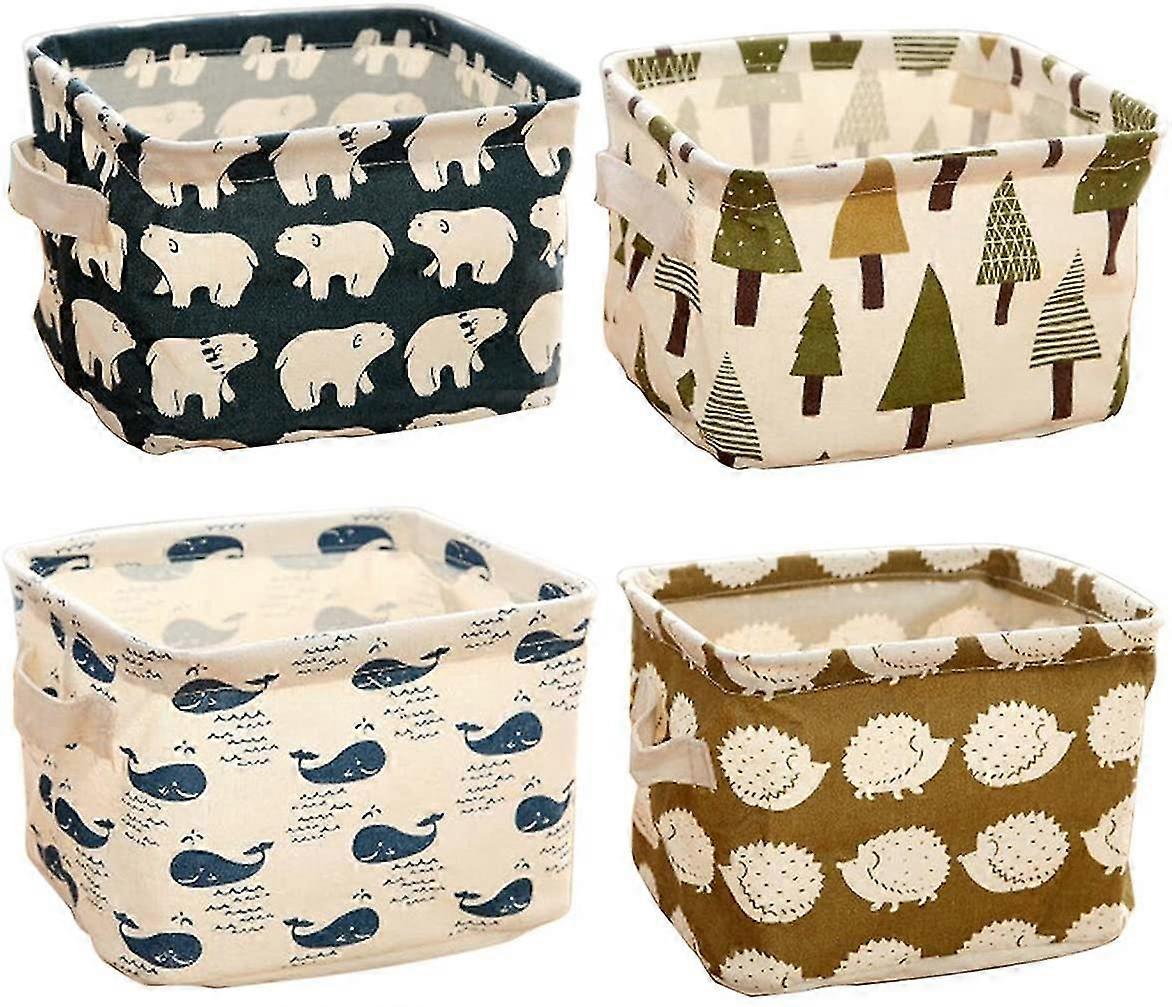 Linen Storage Organizer Sets ( , Polar Bear, Hedgehog, Trees) Small Cloth Storage Box Organizer With 2 S 20.5x16.5x13cm -Sets Of 4