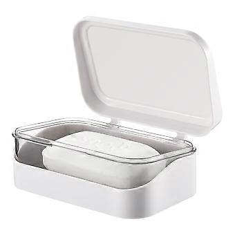 LINJOU Travel Soap Box with Lid, Travel Soap Dish Box with Removable Drip Tray(white)