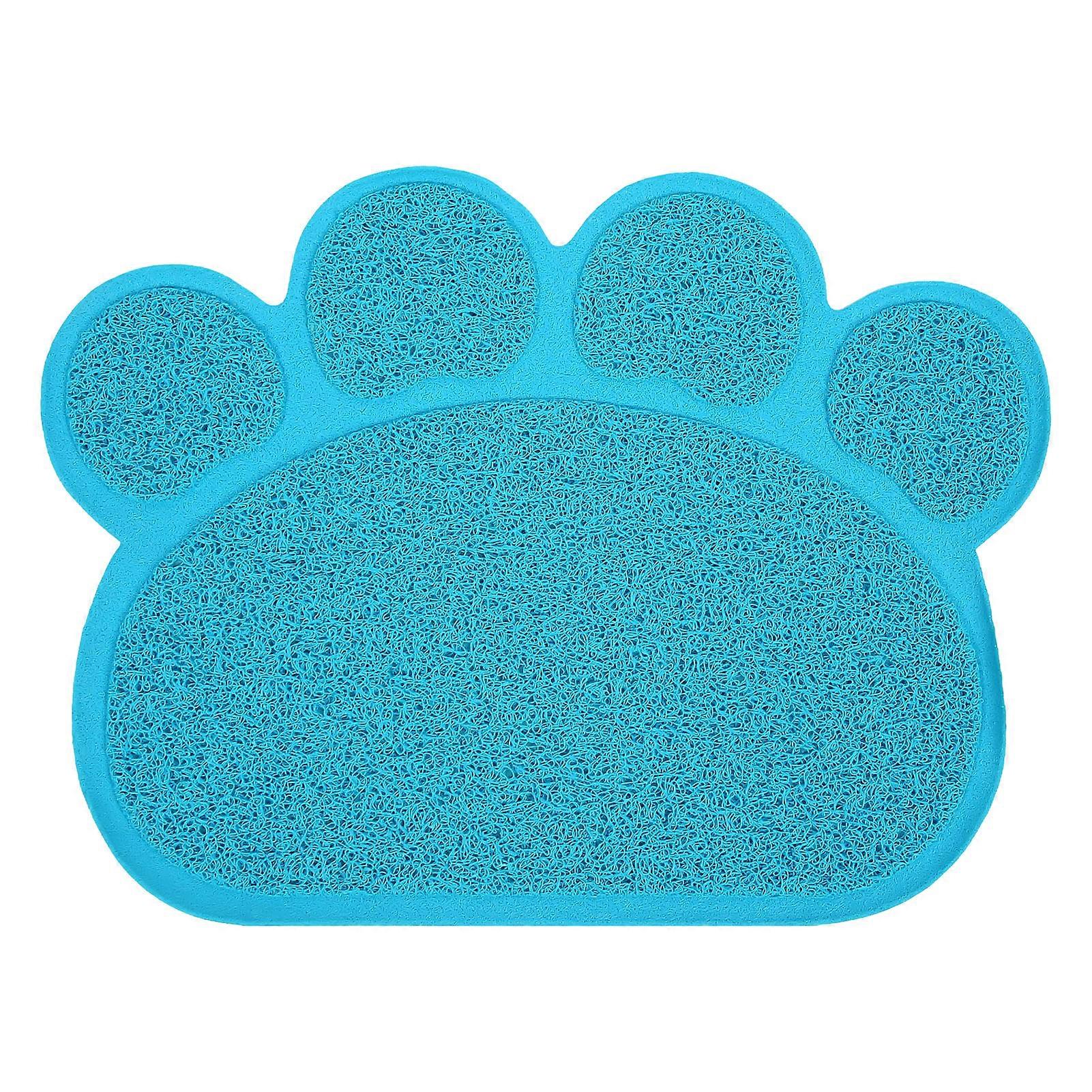 Litter Box Mat Prevent Slip Waterproof Soft Paw Shaped PVC Cat Litter Box Pad for Indoor Floor Blue