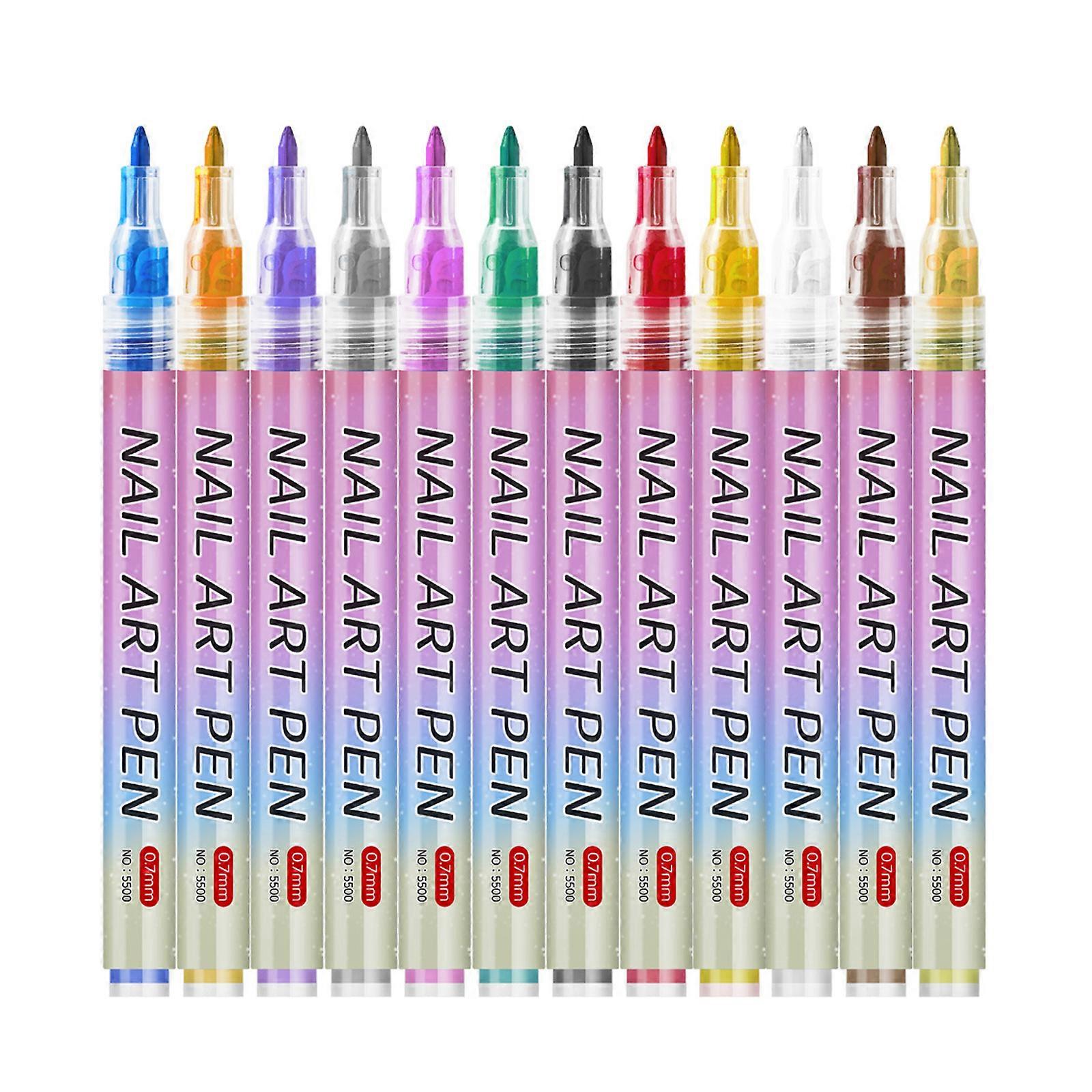 Long Use 12 Color Nail Art Pen 0.7mm Fine Tip Creative Designs Safe and Portable Structure Sturdy Build Multicolor