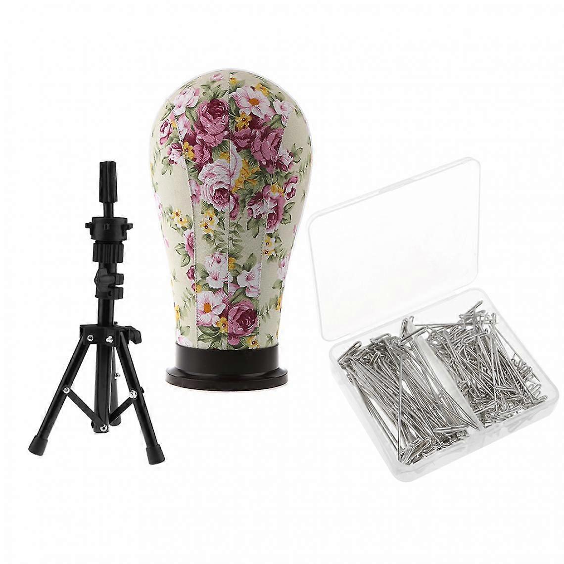 Lot Mannequin Head Model Head Cork Canvas Display Stand for Wig Hats with Tripod and 150pcs Needles