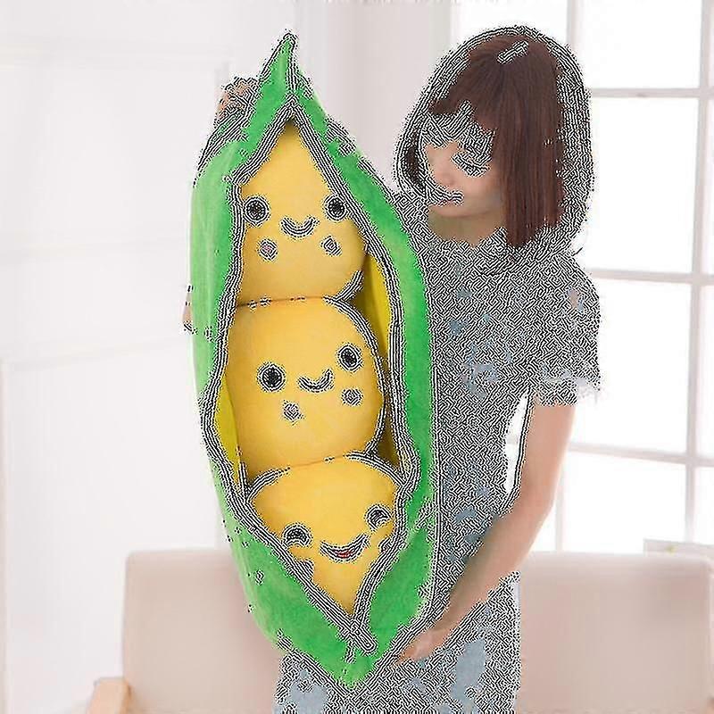 Lovely Pea Pod Shape Plush Bean Bag With 3 Smiling Beans Soft Pillow Home