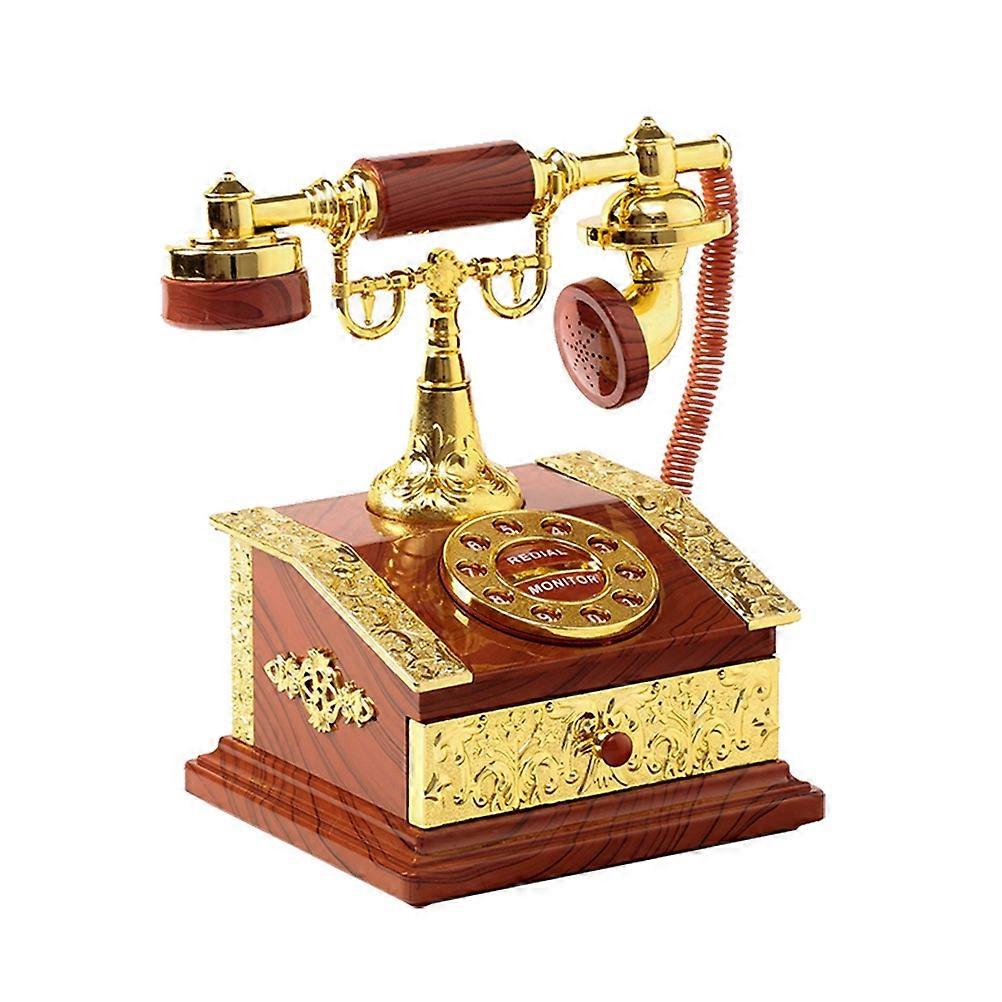Luxurious Home Decoration Music Box Classical Golden Telephone Shape Decorative Item Clockwork Mechanism 1Pack
