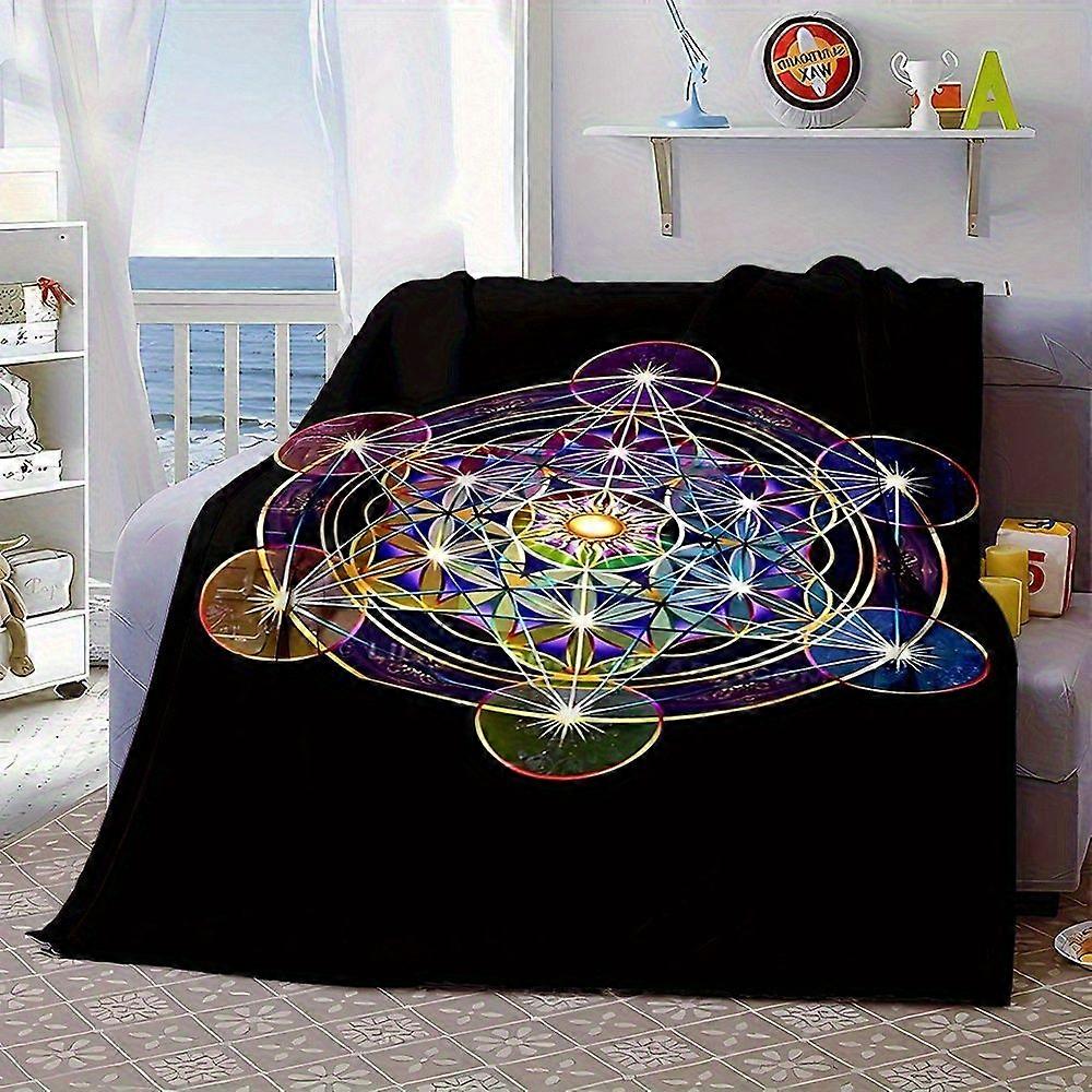 Luxurious Mixed Color Metatron'S Cube Printed Flannel Throw Blanket Contemporary Style, Polyester, Non, All-Season Rever-mnbvc207