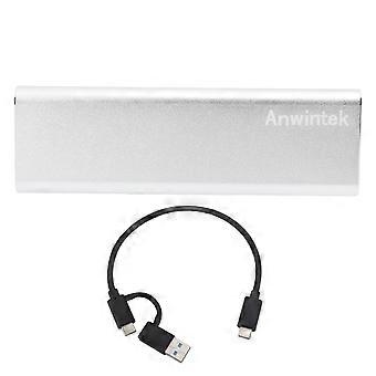M.2 NGFF SSD Enclosure, Key B, USB 3.1 Type C, 10Gbps High Speed Transmission, Metal SSD Case, Silver AC-C Dual Head Cable (HDD Not Included)