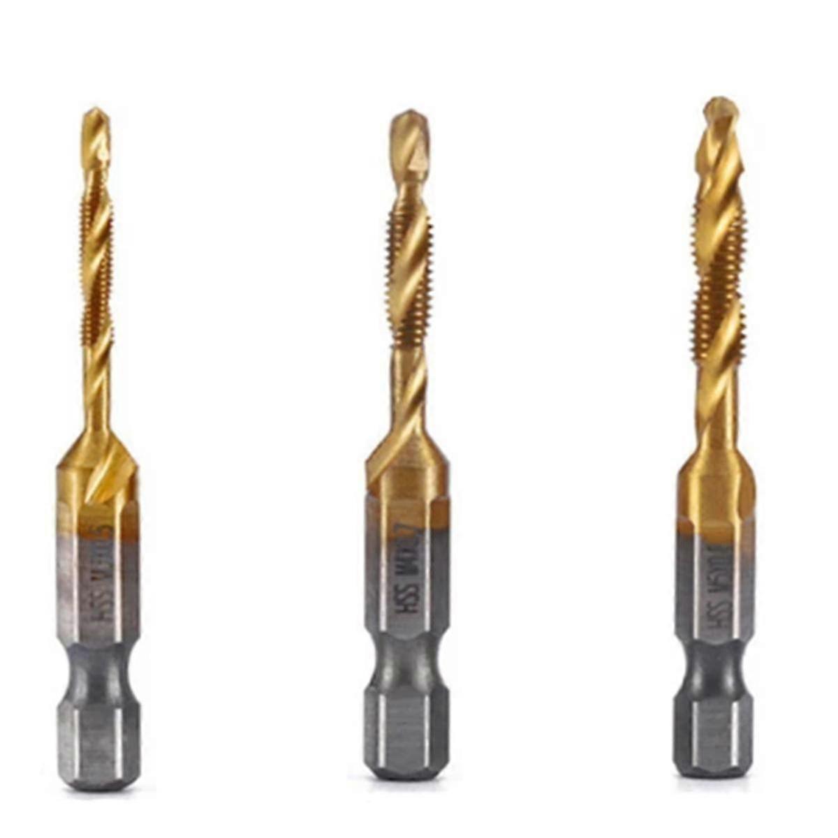 M3++M5 Hex Shank Titanium Plated HSS Screw Thread Metric Tap Drill Bits Screw Machine Compound Tap O