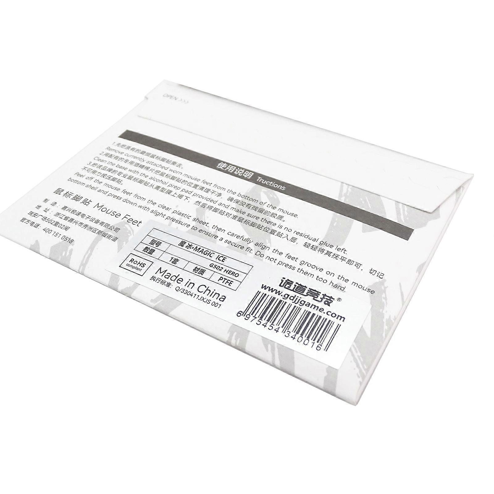 Features: Brand new and high quality All the useless scraps mouse skates are pre-removed for easier use. Reduces the friction between the mouse and mouse pad.Provides a smoother gliding experience. Strictly designed according to real mouses,after consider the mouse sensor's durability and accuracy carefully,the shape, the thickness has been adjusted for every model. The material of the product adds lubricating on the base of PTFE. Achieve precise and comfortable operation on different materials mouse pads such as cloth or nylon. The product not only won't scratch mouse pad, but also makes the movement of the mouse smoother and more stable. Specifications: for G502 Hero Mouse Arc edge design Material: PTFE Quantity: 1Set/Pack Package Includes: 1Set x Magic ICE Mouse Feet note: This product is a replacement mouse feet. After removing the original mouse foot sticker, clean the bottom for shell by the alcohol cotton which is attached in the package, and then paste the new mouse feet on. After removing the transparent protective film on the mouse feet, carefully align the feet groove on the mouse bottom for shell, then apply slight pressure to fit the foot. Do not repeatedly stick and peel off the foot stickers.