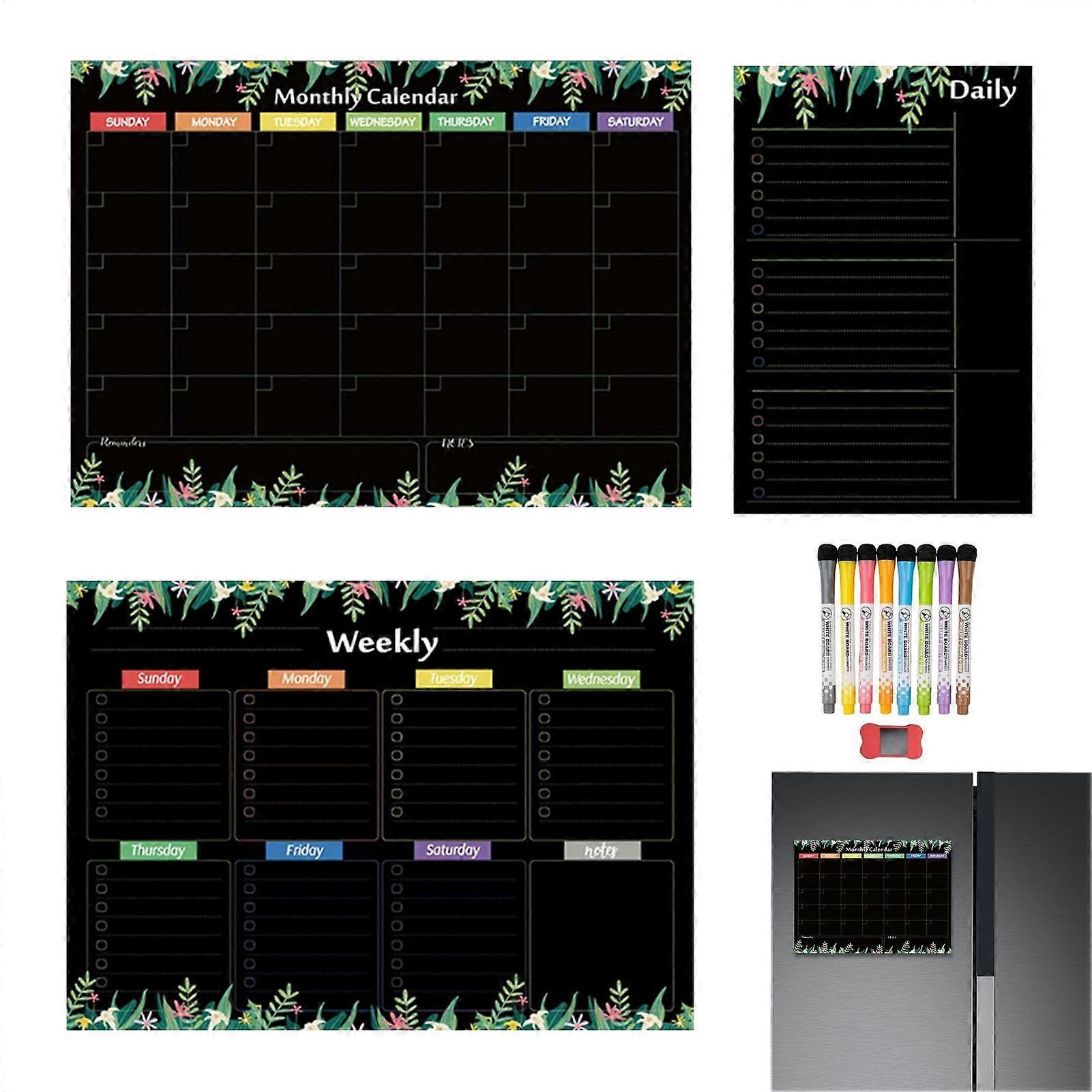 Magnetic Calendar for Refrigerator, Set of 3 with Markers and Eraser