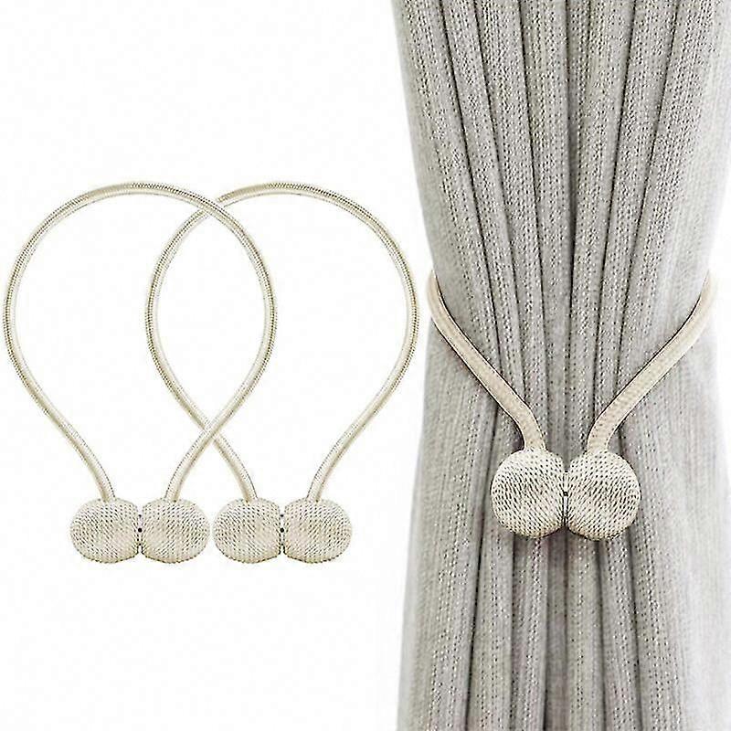 Magnetic Curtain Tiebacks for Windows, Strong Holdbacks for Home & Office, Decorative European Style Weave Holders, 1 Pair Beige