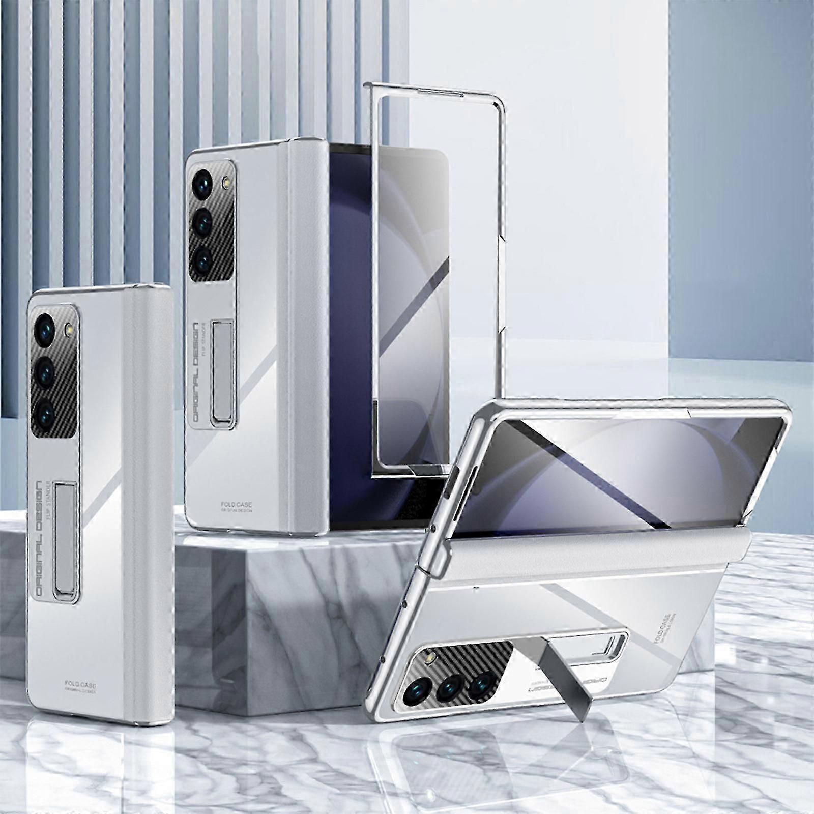 Magnetic Hinge Protection Case Galaxy Z Fold 5 Case, Transparent Plating PC Galaxy Z Fold 5 Case, Built-in Kickstand & Screen Protector