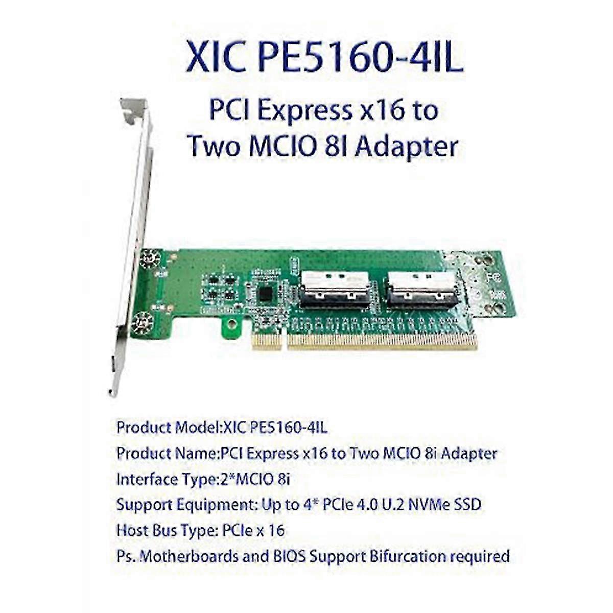 Mainboard Adapter Pe5160-4il Pcie5.0 X16 To Mcio 8i Adapter Board Requires Mainboard Support Split Card