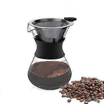 Manual Pour-Over Coffee Maker 401ml with Reusable Stainless Steel Filter for Home Brewing