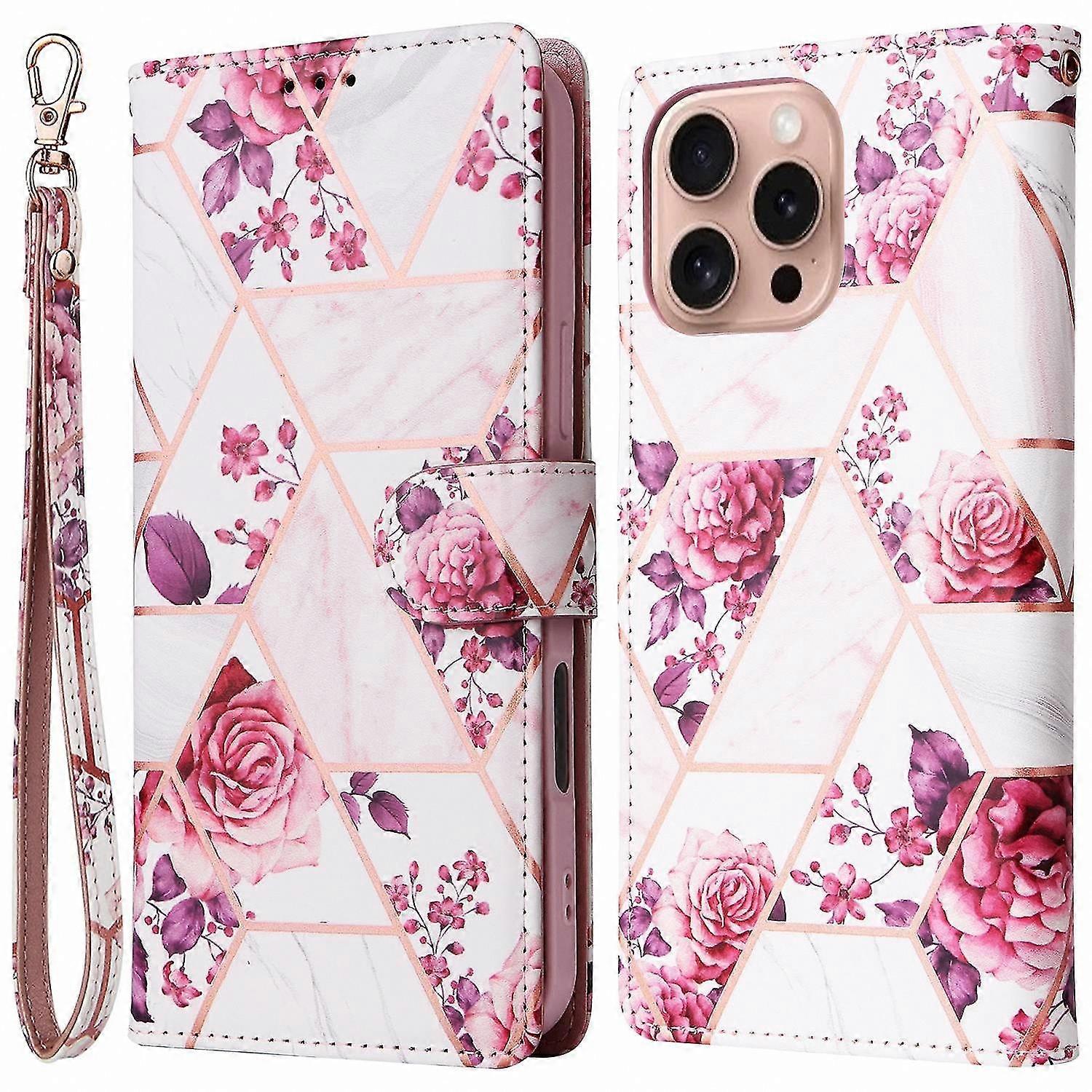 Marble Pattern Lacquered Leather Phone Case for 16 Pro - Black Design Shell