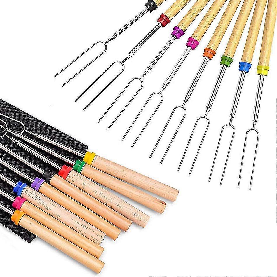 Marshmallow Roasting Sticks, 32 Inch Extendable Telescoping Roasting Sticks Forks With Wooden Handle For Fire Pit