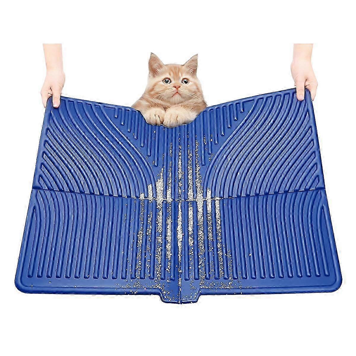 Mat, Large Trapping Mat Soft On Kitty Paws, Litter Box Mat Keep Floor Clean Blue