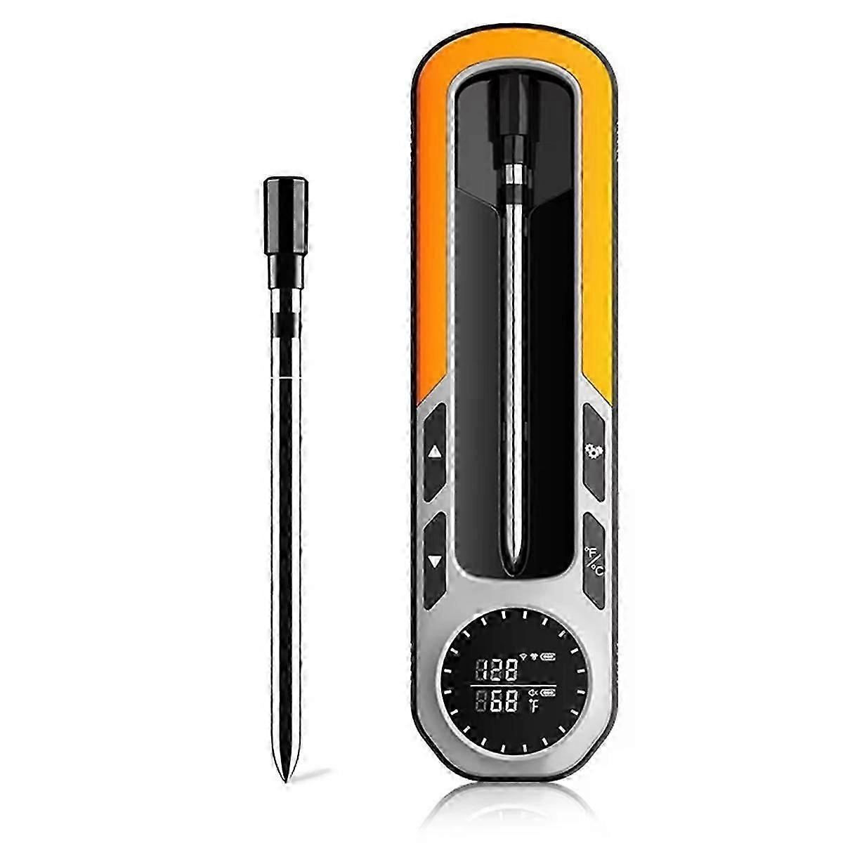 Advanced Wireless Connectivity: Experience unmatched convenience with our meat thermometer. Monitor your cooking remotely without the hassle of wires, perfect for BBQs, ovens, and smokers. Intelligent Cooking Assistant: Our smart app enhances your grilling skills with USDA-recommended presets, custom settings, and temperature graphs. The smart alarm system alerts you when your food is nearing its target temperature, ensuring perfectly cooked meals every time. and Convenient:This thermometer's probe is built to withstand diverse cooking environments. It's rechargeable, with a clear low battery indicator, making it ideal for extended cooking sessions. Colour:As Shown Material:Stainless steel Package Contents: 1 * meat thermometer Only the above package content, other products are not included. Note: Light reflection and different displays may cause the color of the item in the picture a little different from the real thing. The measurement allowed error is +/- 1-3cm.