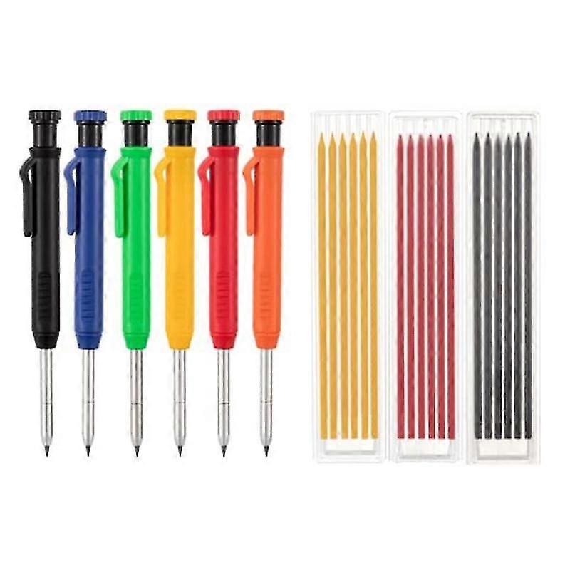 Mechanical Carpenter Pencils Set with 18 Pcs 2.8mm Refills, Deep Hole Woodworking Maker with Built-