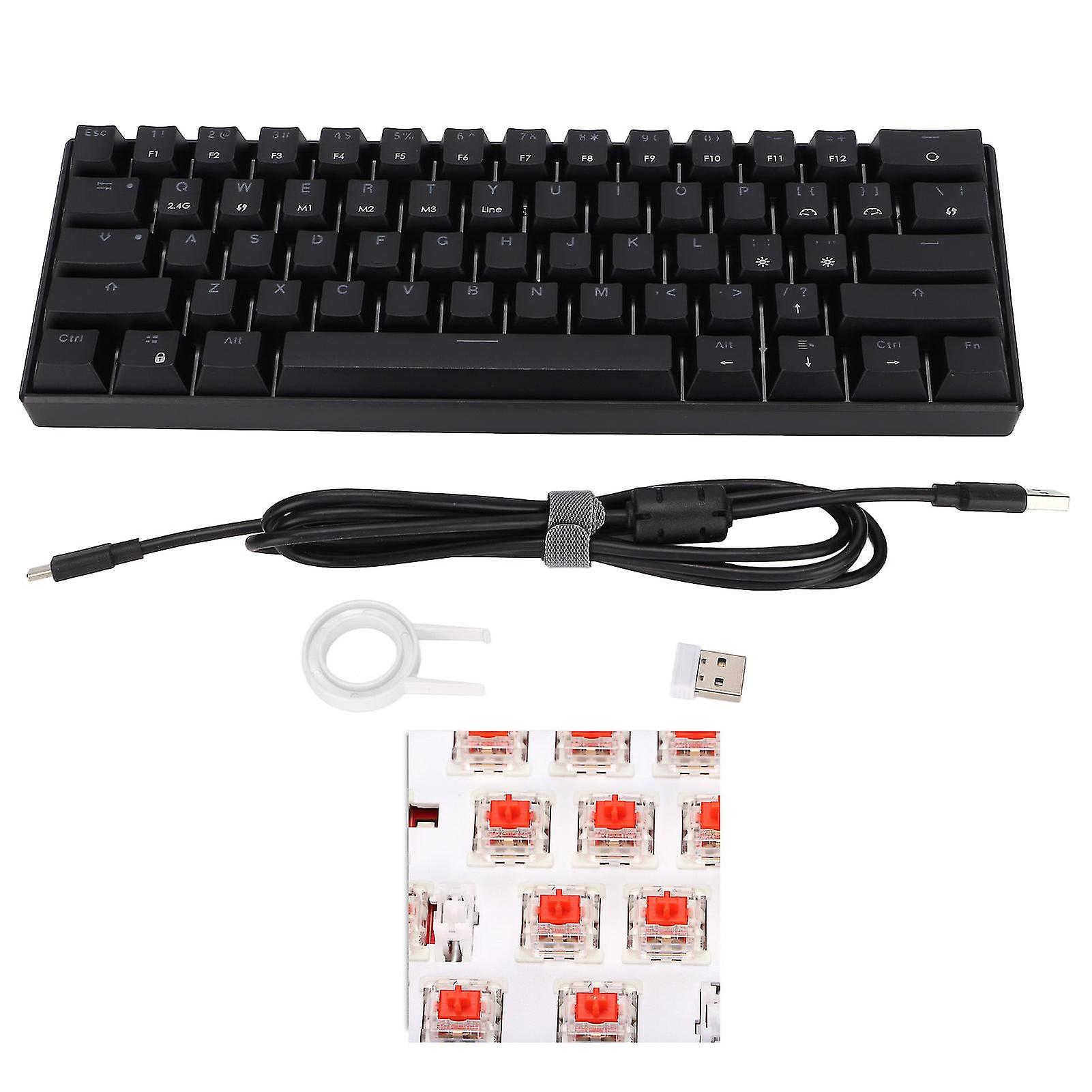 Mechanical Keyboard 61 Keys Three Modes Support Wireless Portable Ergonomic Rechargeable Battery Gaming Keyboardred Axis Body