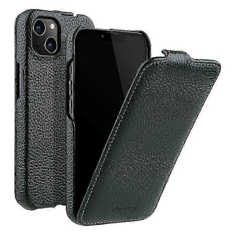 Melkco For Iphone 13 Vertical Flip Phone Case Litchi Texture Genuine Cow Leather+pc Protective Shell