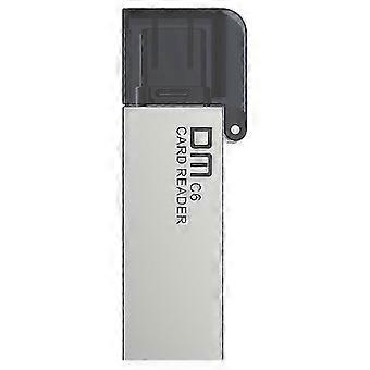C-tyypin muistikortinlukijan siirto valokuvavideo TF-kortti lue samanaikaisesti kirjoittajan muistikortinlukija kamerapuhelimelle hopea