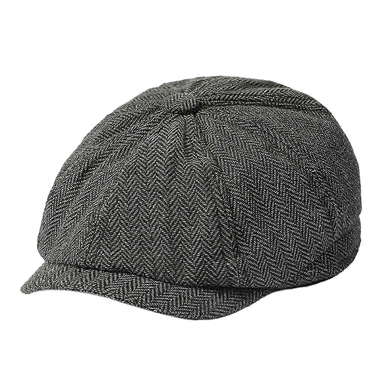 Men Autumn Winter Classic Herringbone Pattern Octagonal Hat Extended Brim Beret Hat Newspaper Painter Hat