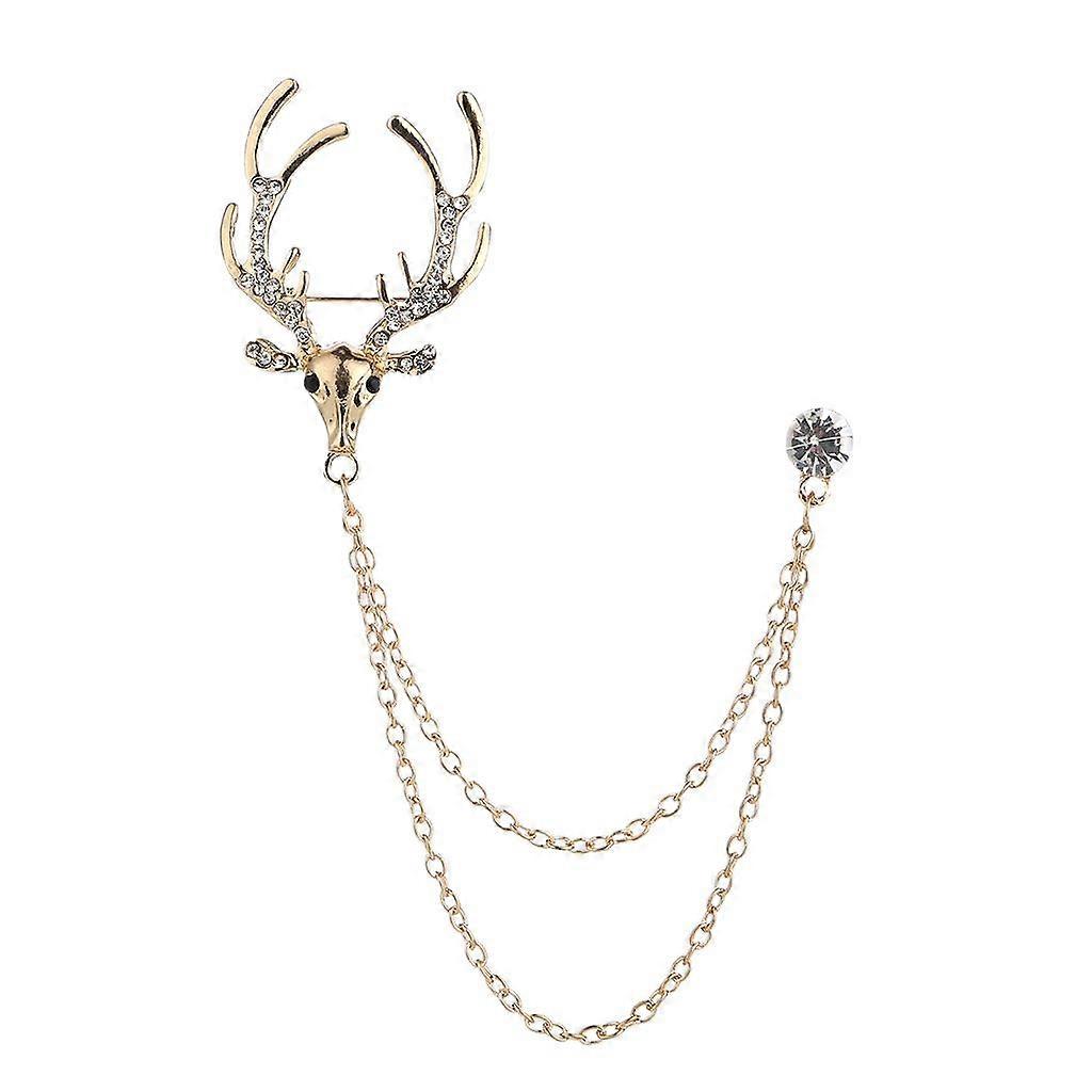 Men' Lapel Pin Badge with Chains Deer Brooch Pin for Suit Tuxedo