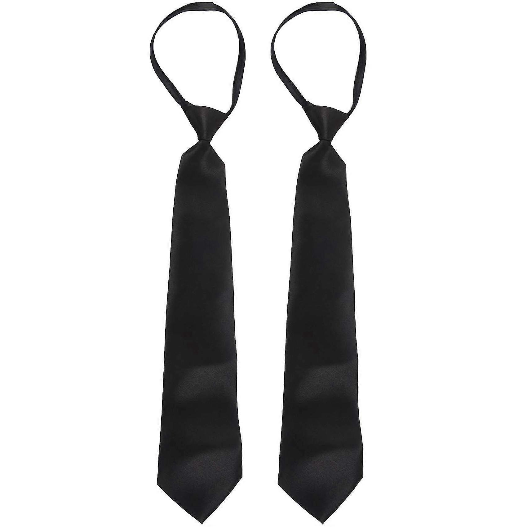 Men Solid Black Polyester Zip Up Necktie Smooth Zipper Tie