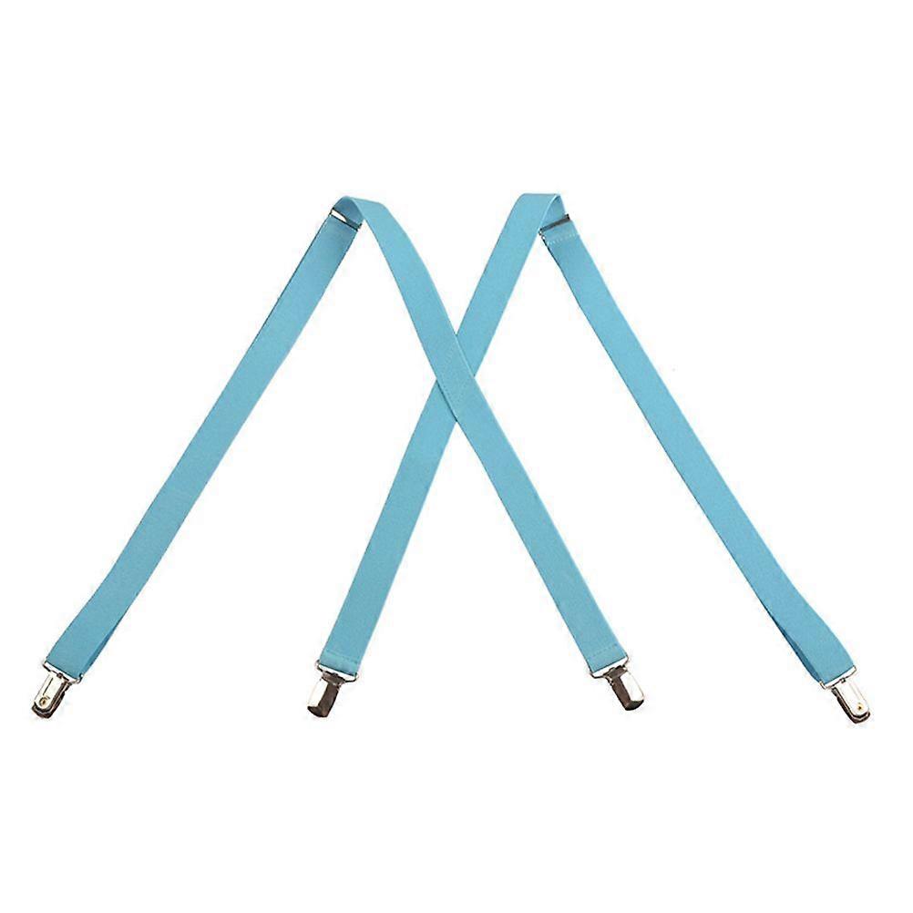 Mens Suspenders Wide Adjustable and Elastic Braces X Shape Pants Strap Heavy Duty with 4 Strong Clips (Sky Blue)